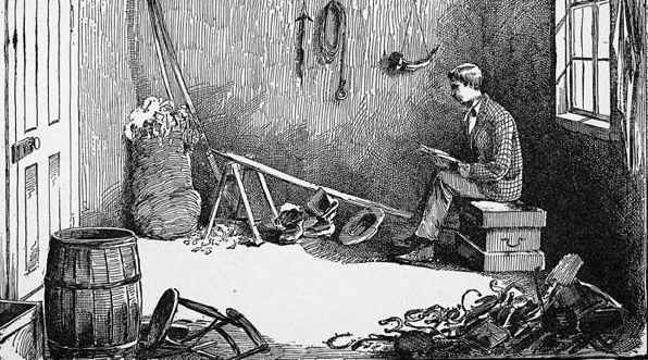 Thus soliloquizing Guy made his way through the yard to the carriage-house and mounted the stairs leading to the rooms above. There were three of them. The first and largest served in summer as a place of storage for Mr. Harris’ sleighs and buffalo-robes, and in winter for his buggy and family carriage. The second was the room in which the coachman slept, and the third Guy had appropriated to his own use.