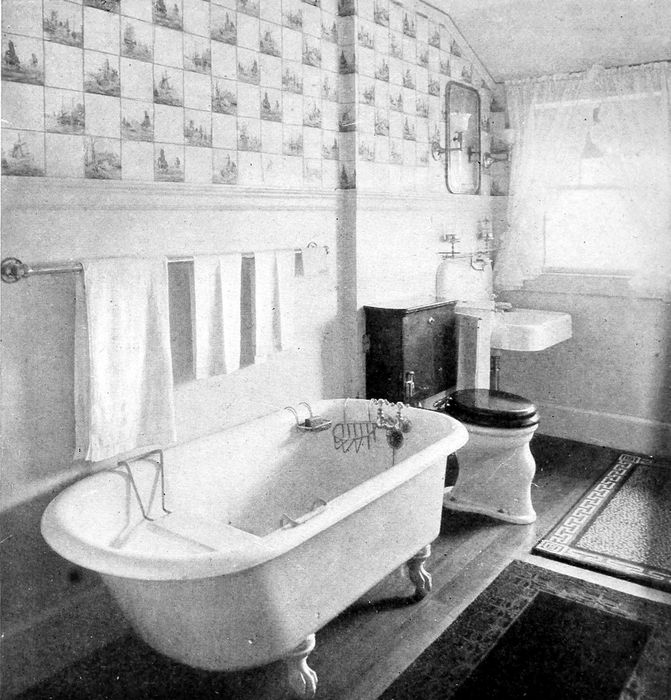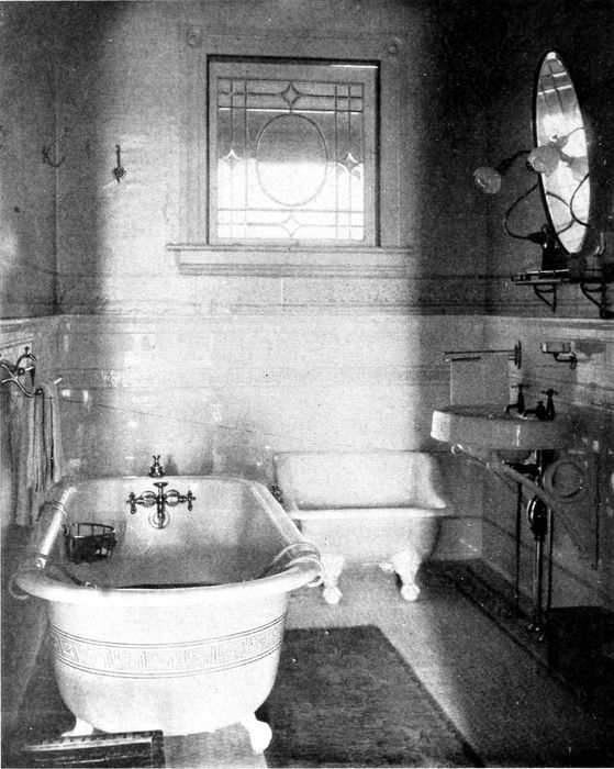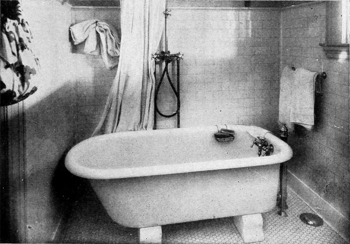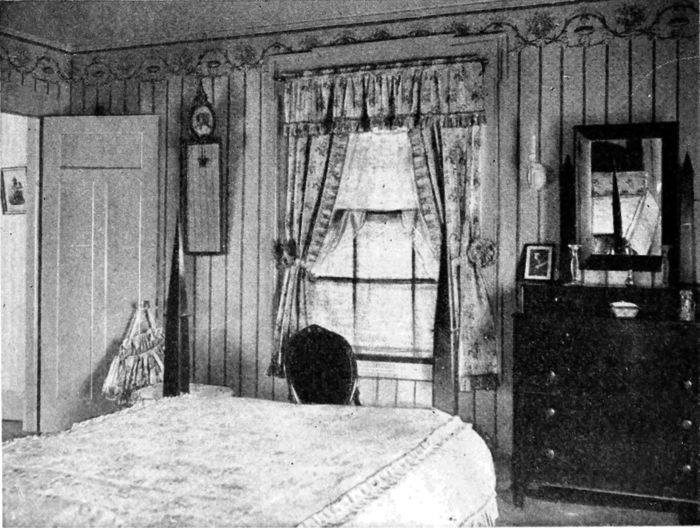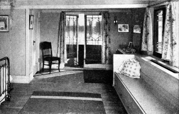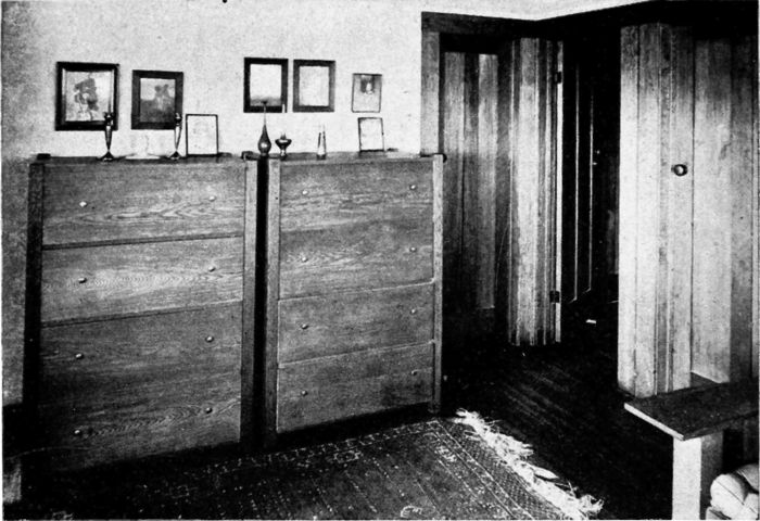 The doors, window frames, dressers and other necessary woodwork should be plain, made of medium wood and painted some[120] light color or enameled white; or finished in the natural state with a transparent varnish.