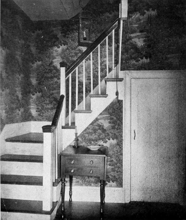 A use of the Colonial flat arch which separates this stairway from the living-room and makes a small room of it