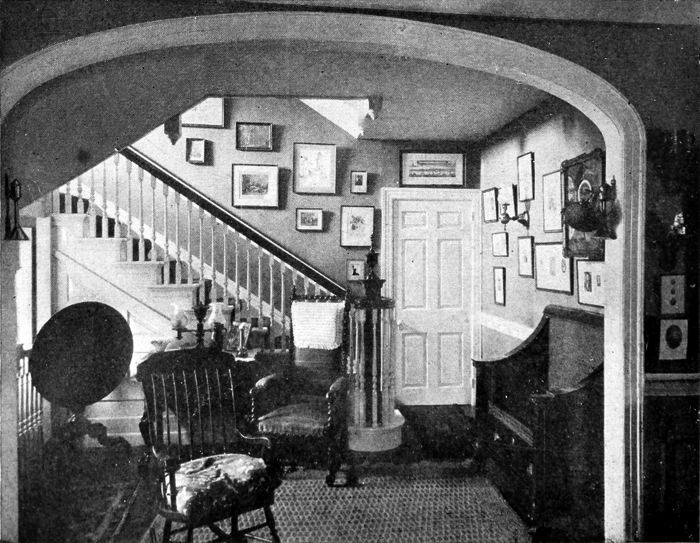 The hall paper should not be a decided contrast to rooms opening onto it. Tapestry paper may often be found successful in this situation