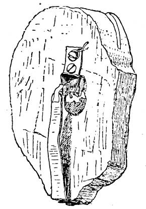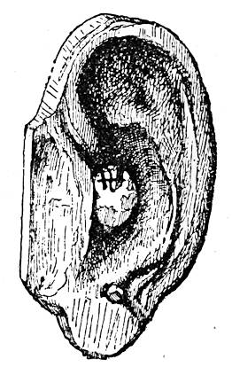 Naturally enough the inventor of the Telephone began with crude and primitive[3] apparatus. The earliest form of[15] telephone-transmitter now extant, was a rough model of the human ear carved in oak wood, and of the natural size, as shown in Figs. 2, 3, 4, & 5.
