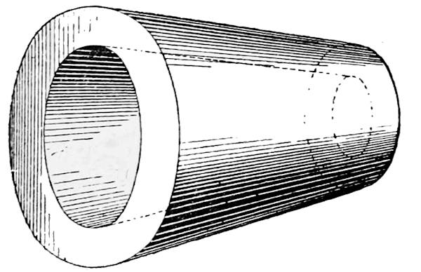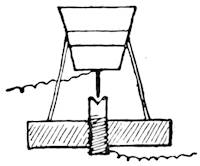 Another transmitter, also a mere variety of the Fourth Form, has been described to me by Herr Peter, of Friedrichsdorf, who assisted Reis in his earlier experiments. Fig. 11 is prepared from a rough sketch furnished me by the kindness of Karl Reis. Herr Peter describes the apparatus as having been turned out of a block of wood by Reis upon his own lathe. The conical hole was identical with that of Fig. 9, but the surrounding portions of the wood were cut away, leaving a conical mouth-piece.