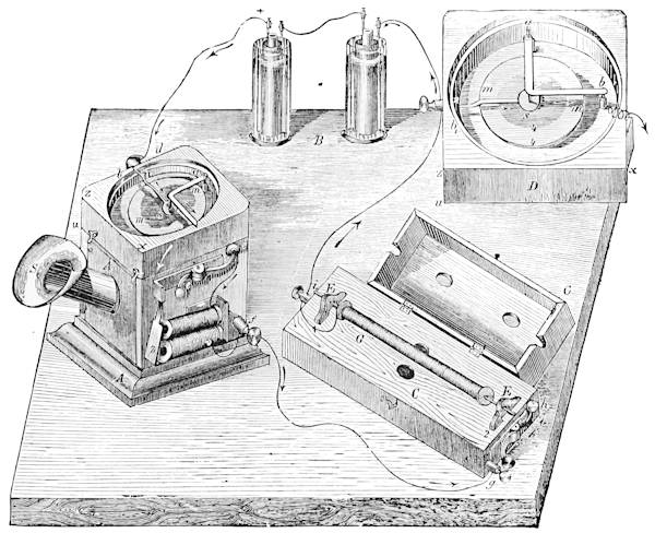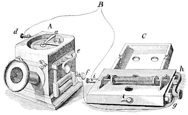[6] The name “Telephone” had already been applied by Sir C. Wheatstone (1831) to an acoustic arrangement for transmitting sounds through wooden rods to a distant place in a purely mechanical manner. It is needless to observe that speech as well as music can be thus transmitted; and though Wheatstone gave telephonic concerts, this does not prove (nor do telephonic concerts given through Reis’s instrument prove) that speech could not be transmitted also. The name “Fernsprecher,” now used in Germany for the Telephone, was only suggested in 1877 by Dr. Stephan, Postmaster of the German Empire, in obedience to the absurd fashion which has raged since 1871 in Germany of rejecting words of classic derivation.