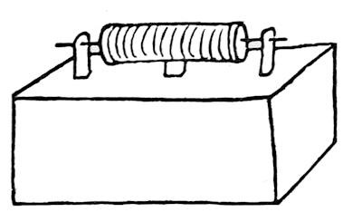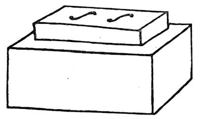 Later a shallow rectangular wooden box was substituted for the violin, and the spiral was laid horizontally upon it (Fig. 20). The date when this modification was made was either at the end of 1861 or the early spring of 1862. A cigar-box was the actual sounding-box, and the needle was supported within the coil, but not touching it, with its ends resting upon two wooden bridges.