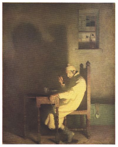 The night had begun to fall as I got close; and in three of the lower windows, which were very high up and narrow,{14} and well barred, the changing light of a little fire began to glimmer.