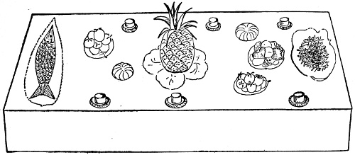 | To Make the Pineapple, 175; A Fish, 176; Apples and Fruit Salad, 177; The Cups and Saucers, 178; Snapping Bonbons, 179; Baskets of Green Burs, 180; Dandelion Amusements, 181. | ||