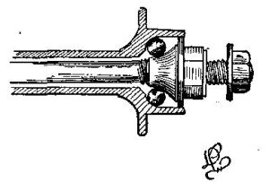 A word about oiling. Do not go to the excess of either too little or too much oil. In the first case the cones and rim will wear more quickly and the bearings run hard; and in the latter, the oil will gum, causing hard running, or, if it[Pg 497] does not do this, it will ooze out of the joint, and, collecting the dust, will become gritty and mar it. The amount and frequency of the oiling, of course, depend on the use of the bicycle. For a wheel moderately used, a fair oiling once a week I should deem amply sufficient. Most of the bearings have openings in which to apply the oil, and the oil should not be applied at any other place than this. In the case of the head-bearings, unscrewing the cone of the upper one will expose it, and will permit the head to be raised so as to expose the one on the crown for oiling. The pedals may be lubricated by removing the dust-cap and applying the oil on the outside bearing, tilting the machine so as it will run down to the inside one.