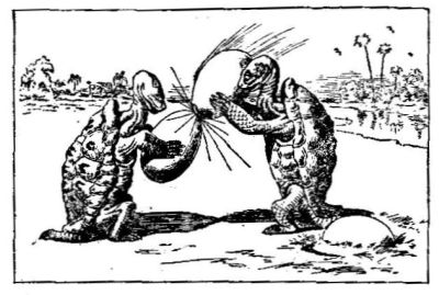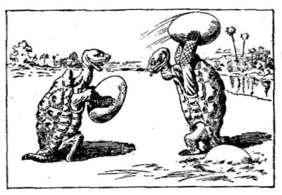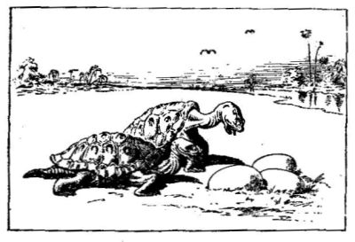 Mr. Turtle. "Hello! What's this—ostrich eggs?"