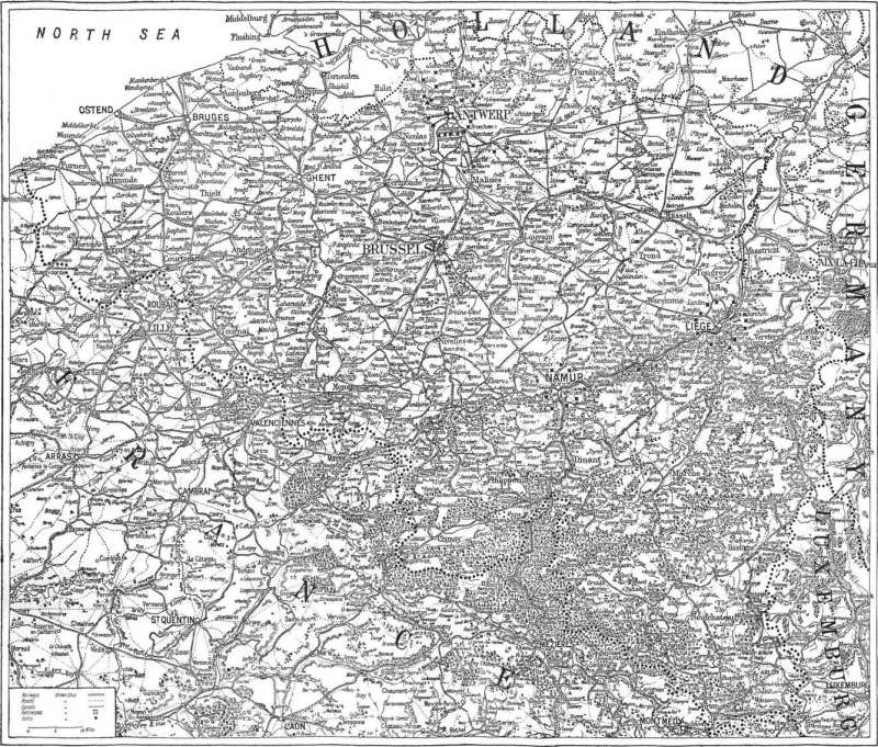 The promise had no value. Glance at the map of Belgium. It will be seen that the fortress of Namur is as nearly as possible the geographical centre of the country. What10 would be the substance of Belgian independence if, by “the oldest of all rights,” that strong place was kept by Germany presumably as a barrier against France; actually as the central base of an occupation? Belgian independence would be a shadow.