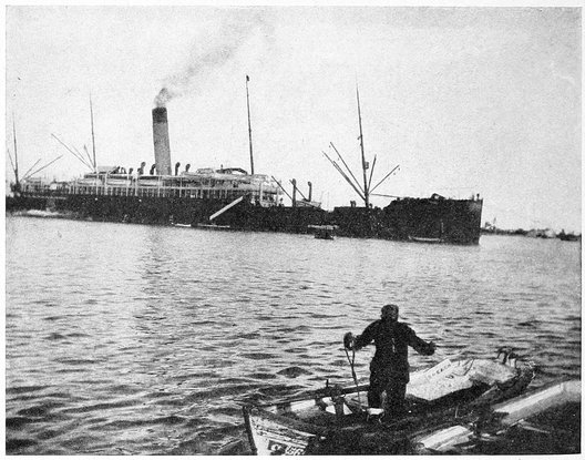 I raced away to the Home to invite the Chilian to a farewell luncheon; then returned to the appointed rendezvous. The day was stormy, and a dozen downpours drenched me as many times during the seven hours that I waited. Towards nightfall the captain drove up in a ’rickshaw and, without giving me the least sign of recognition, stepped into his launch. As he disappeared in the cabin below, I sprang to the deck of the craft.