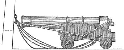In the same work are instructions as to firing in a wind, when the train of powder might be blown from the vent before the linstock could be applied. The gunner was to form a clay rampart, a sort of tinker’s dam, on the metal of the piece on the windward side of the touch-hole.