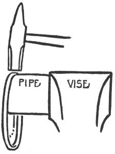 When the tool is filed into shape, heat the end again to a dull red and plunge it quickly in a pail of water several times until it is entirely cold. The tool is then ready for use.