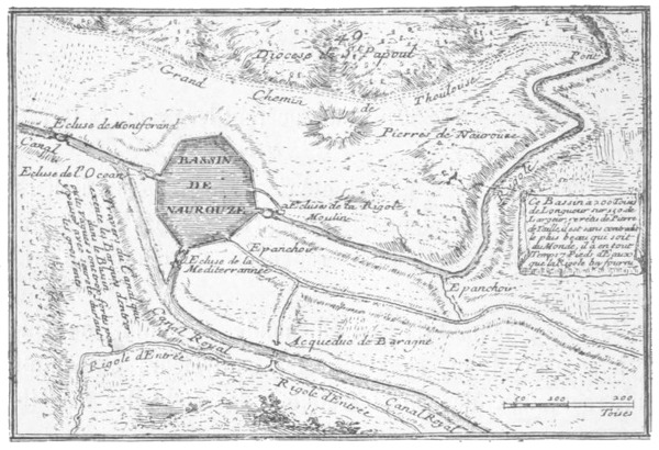 [9] Il ne se trompait pas, Riquet, en affirmant qu'on règlerait ainsi le débit des eaux; encore actuellement les mêmes robinets servent au même usage, et, malgré les progrès de la science, les ingénieurs n'ont rien trouvé de plus pratique et de plus commode.