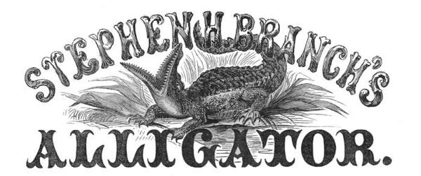 STEPHEN H. BRANCH’S “ALLIGATOR” can be obtained at all hours, at wholesale and retail, at No. 114 Nassau Street, (Second Story), near Ann Street, New York.