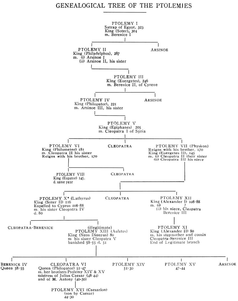 One or two novels and plays dealing with the History may here be mentioned. The career of Cleopatra has inspired two noble tragedies, Shakespeare’s Antony and Cleopatra, and Dryden’s All for Love; extracts from them are given on p. 214. Dryden’s masterpiece should be better known; it is most moving, admirably constructed, and contains some magnificent scenes. A novel by Pierre Loüys, Aphrodite, also treats of the period, but in a scented Parisian way.—Anatole France, Thais, pictures life in the 4th cent. A.D.; the details are both vivid and accurate, and build up a perfect work of art.—For the early 5th cent. there is Charles Kingsley’s Hypatia, a rousing yarn about the final contest between Paganism and Christianity; Kingsley is always readable, but his bluff burly mind was incapable of understanding Alexandria.—Two good novels by Marmaduke Pickthall, Said the Fisherman and Children of the Nile touch upon events in the modern period.