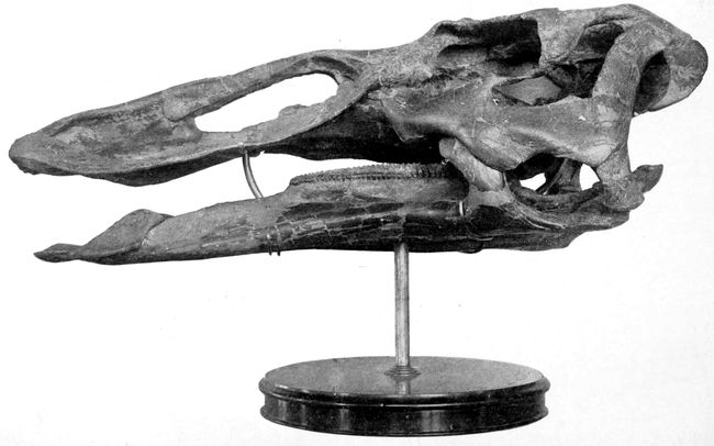A word also about that great flying machine of the Cretaceous, the flying lizard Pteranodon. The skeleton and a very fine skull, which my son found on Hackberry Creek in 1906, is now mounted in the British Museum, where my warm friend Dr. A. Smith Woodward assures me “my specimens are greatly admired.”