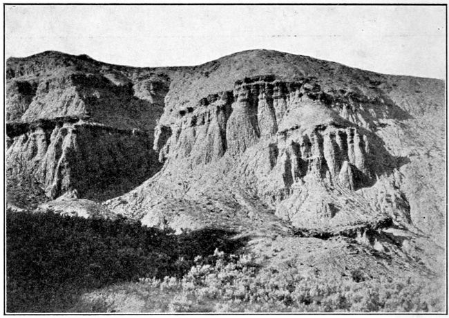 A general view of the country from an elevated butte shows many cone-like mounds, resembling table mountains or even haystacks in the hazy distance! As the rocks, and even the flint-like material, readily disintegrate, the creeks that run east into the Cheyenne River soon radiate like the rays of a fan and deeply scar the narrow divides into rather deep canyons and narrow ravines. Perhaps a thousand 272feet of these fresh-water beds, are laid down in a basin surrounded, on all sides, by the marine, Fort Pierre, and Fox Hills Cretaceous.