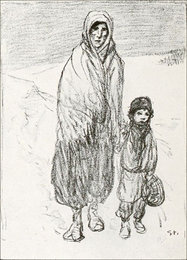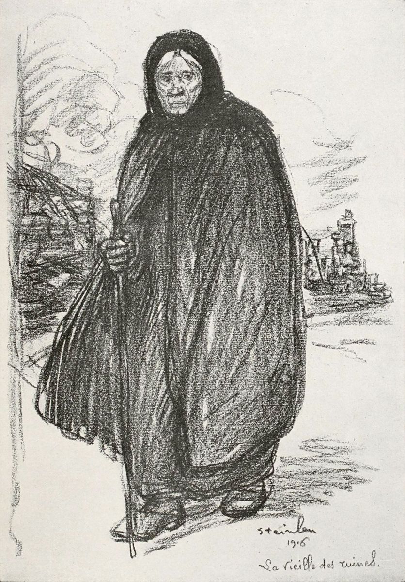 La Vieille des Ruines, hors texte d’après une lithographie de Steinlen.