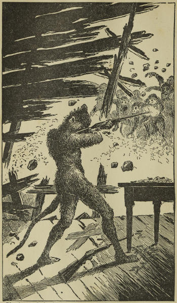 Philip was so deeply engaged in directing the movements of those at the cannon that he paid no attention to what was taking place outside his own sphere of action. Knowing perfectly well the manners of the apes, he understood that if the volleys of grape should cease even for a few moments Goliah’s forces would charge in overwhelming numbers, believing the colonists were growing weaker. Therefore, as rapidly as four men could clean and load each piece, it was discharged point-blank at that portion of the thicket in which the enemy appeared to be concealed in greatest force.