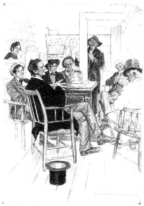“When he got home he’d come right in here first time he was downtown and tell me every blamed yarn he’d heard. Whole crowd would get in here sometimes and talk over the trip, and I tell you it was something to hear ’em laugh. You could tell how Lincoln kept things stirred up. He was so blamed quick. Ever hear Judge Weldon tell that story about what Lincoln said one day up to Bloomington when they was takin’ up a subscription to buy Jim Wheeler a new pair of pants? No? Well, perhaps I oughten to tell it to you, ma says it ain’t nice. It makes me mad to hear people objectin’ to Mr. Lincoln’s stories. Mebbe he did say words you wouldn’t expect to hear at a church supper, but he never put no meanin’ into ’em that wouldn’t ‘a’ been fit for 8the minister to put into a sermon, and that’s a blamed sight more’n you can say of a lot of stories I’ve heard some of the people tell who stick up their noses at Mr. Lincoln’s yarns.