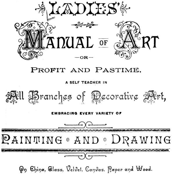 In presenting to the public and our artistically inclined people our “Art Manual” we should do so with some trepidation had we not the assurance, in placing before them this work, that it would instantly win its way into their favor by its merits. Most books produced by the press of the present day are novels, compilations, scientific and theological ones, meeting as they do only certain classes, and are subjects which have been constantly before the people. We present you a “new book” in every sense of the word. We propose entering with our readers into the beautiful realms of Art, than which there is no more interesting subject; our object being its promotion and dissemination. We want to see the great majority of our refined, educated, but needy women embrace it as a source of profit as well as pleasure, many of whom with an intellect for greater things, but incapable of muscular labor or exposure, can, by applying themselves energetically to this occupation, earn a good livelihood and famous name, and assist in disseminating its beauties everywhere. Many homes are there in our land, which they can ornament, and embellish to their profit, and the pleasure of others. Those comfortably situated in life, whose home decorations they prefer to be the product of their own hands, 4will hail our “Manual” as “a friend indeed.” To the child in whom is observed traits of genius it will be of invaluable assistance in developing those traits. Our aim is to combine in this work all the different methods of producing portraits, landscapes, painting on canvas, wood, china, etc., etc., to furnish to all lovers of the useful and beautiful in art a true teacher, making every instruction so plain and comprehensive, that a child can grasp the meaning. In thus combining all these arts in one volume, we save the learner the expense of purchasing a large number of books at a cost which effectually precludes the possibility of many engaging in this profitable and pleasant occupation. Then, to those whose tastes are artistically inclined, and who find it most inconvenient to obtain instructions in all the branches desired; to those in whom genius lies dormant and whom necessity compels to earn their own livelihood; to those who desire to combine pastime with pleasure, and to those who have the means, tastes and desire but not the necessary assistance at hand to ornament their homes, we respectfully dedicate our “Art Manual.”