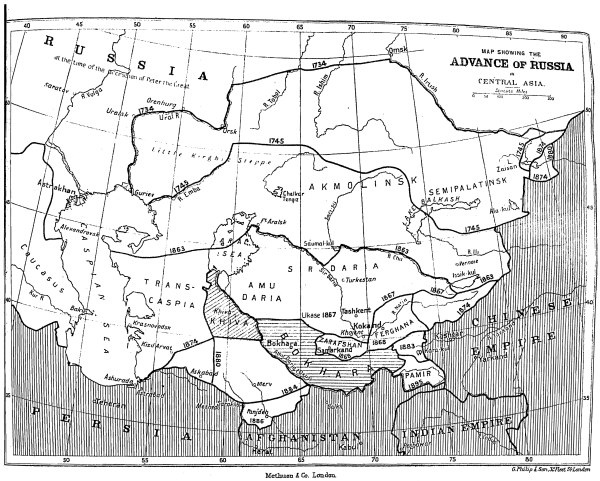 751 Lord Curzon’s great work on Central Asia is considered by the Russians themselves as a text-book, though they vigorously combat his views on their policy.