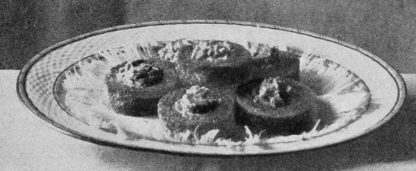 1. CIRCLES OF BROWN BREAD WITH NUTS. 2. CIRCLES OF BROWN AND