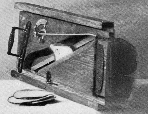 The bread-plane can be adjusted to cut slices of any thickness. It will cut fresh bread very thin. Bread which is a day old it will cut as thin as lace. For cutting bread for sandwiches it is especially useful.