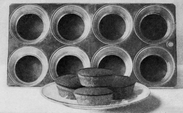 cornmeal should be thoroughly cooked, and the baking can be continued until the muffins draw away from the sides of the pans. The baking should be slow at first, so the muffins will rise evenly, giving a flat top. This quantity of mixture will make one dozen large muffins.