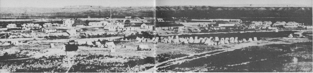 Barracks for five companies and the new guardhouse viewed across the parade grounds about 1889. Courtesy U. S. Signal Corps.