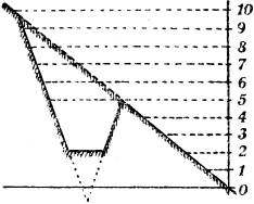 Die Brauchbarkeit und Anschaulichkeit der Darstellung einer Geländefläche durch eine Karte gewinnt erheblich, wenn auf ihr eine genügende Anzahl von Höhenlinien der Art verzeichnet ist, daß ihnen eine Einteilung der Fläche in Schichten gleicher Dicke entspricht (Schichtenplan). Auf dieser Darstellung einer Geländefläche durch ihre Schichtlinien beruht[2] die Möglichkeit, auf zeichnerisch-konstruktiven Wegen eine große Anzahl von Fragen und Aufgaben zu beantworten, wie sie in der Vermessungskunde, Kartenkunde, Geographie, militärischen Topographie, Bauingenieurwissenschaft, Geologie, Bergbaukunde usw. vorkommen können. Die Ausführung der Methoden, die zur zeichnerischen Lösung solcher Fragen dienen, bildet ein wichtiges Mittel der angewandten Geometrie, das sich aus praktischen Bedürfnissen heraus, ursprünglich nautischen und militärischen, entwickelt hat, zuerst in Frankreich, wo die Kenntnis derartiger Dinge noch bis vor hundert Jahren militärisch geheim gehalten wurde.