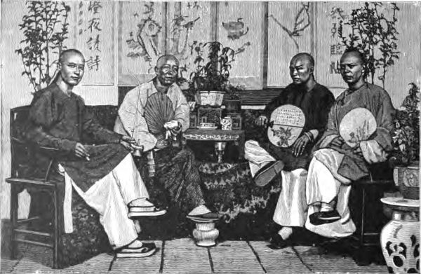 Doctor Bronson found the office without any difficulty, and was shown into a neatly-arranged parlor, where four well-dressed Chinese were sitting. Three of them were holding fans in their hands, while the fourth was indulging in the luxury of a pipe. Plants in pots stood near the walls, and there was a table in the centre of the room, where the oldest and most serious of the Oriental gentlemen was seated. Evidently it was a time of relief from labor, and so there was no delay in attending to the inquiries of the Doctor.