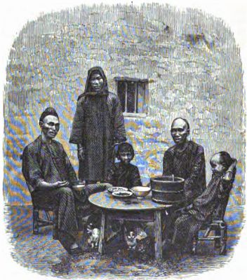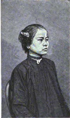 While on the way to the ship, Fred made a sketch of the younger of the two women, and declared his intention was rather light in complexion for an inhabitant of Southern China; her hair was covered by a thick kerchief, tied in a knot under her chin, and her jacket or blouse was buttoned in front, and hung loosely down like a silk wrapper. As soon as she discovered that she was the subject of a sketch she put on her sweetest smile, and was evidently proud of the honor that Fred was showing her.