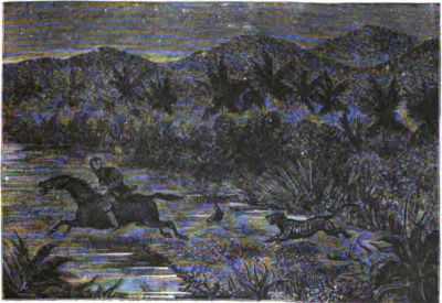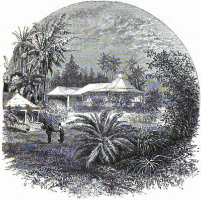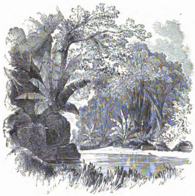 "The road to the plantation was very steep in several places, and the mules that we rode had all they could do to carry us. The path wound[Pg 444] in and out among the rocks, and under the trees peculiar to the tropics; and one of the trees came near being the cause of my falling over a high cliff."
