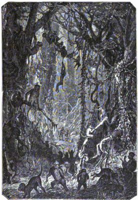 "Not by any means," was the answer. "They are so busy with displaying their feathers to each other, that they do not take notice of the disappearance of one of their number until they are greatly reduced. The morning I went out to see the business, I was stationed in a little bower about a hundred yards from the tree where the birds were, so that I could see all that went on. There were twenty-one birds there, all beautiful males, and they made the prettiest sight of the kind that ever came before my eyes. The natives shot fifteen of them, and finally one of the birds was not hit hard enough to prevent his screaming as he fell. The others then took the alarm, and in two minutes they were all out of sight."