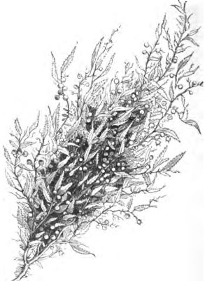 "The sago-tree belongs to the palm family; it is thicker and larger than the cocoa-palm, but not so tall, and its leaves are very large and long. The stem of the leaf is twelve or fifteen feet long, and six inches in diameter at the butt, and is used for a great many purposes. Whole houses are built of these stems, from the framework to the thatch-poles and flooring, and they never shrink or bend, or require any paint or varnish. The leaf forms an admirable thatch, and the trunk of the tree is the food of many thousands of people.