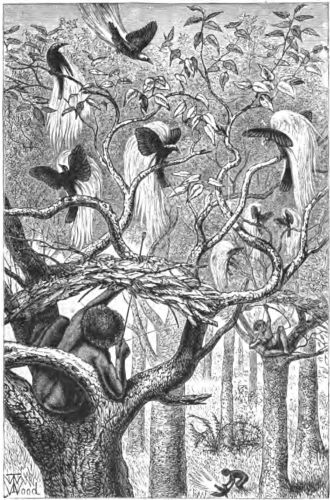 "I had an opportunity to go to the forest to see the process of shooting the Great Bird of Paradise, and went at once. Quite a trade is carried on in these birds, and the skill of the natives is devoted to capturing them without staining their plumage with blood, or allowing the birds to injure it during their struggles.