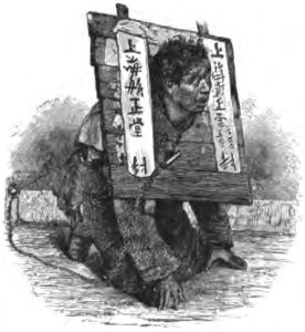 "Others treat them harshly—perhaps not without cause—sometimes, and punish them severely for disobedience. While I was at Dobbo, a Chinese merchant fastened one of his slave-debtors in a cangue, and kept him there an entire day, chained to the wall of his shop. The man had been caught stealing from his master, and the latter made himself judge, jury, and police-officer without delay. The cangue is a wooden collar around the neck; it is about three feet square, and made of planks from one to two inches thick. It is a heavy article of wearing apparel, and not at all ornamental."
