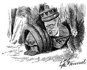 “Why, I’ve just remembered that I’ve got a latchkey too, my very own! I must go and find it.” And away went the White King into the wood.