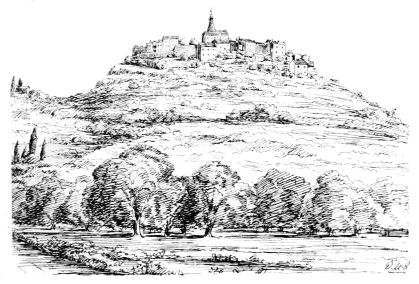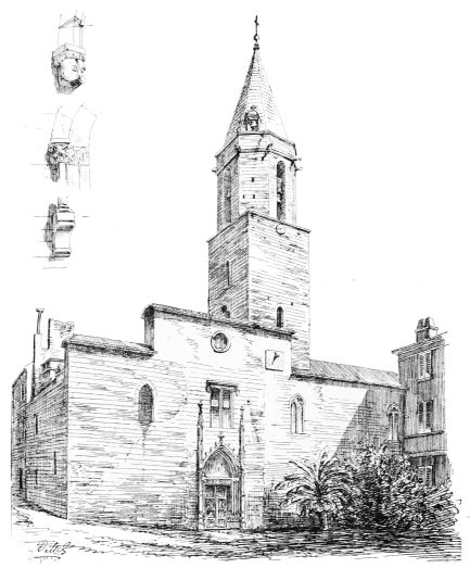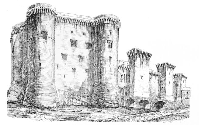 At Avignon the change of aspect is even more complete. “On arriving at Avignon,” says Prosper Mérimée, “it appeared to me that I had left France behind. Landing from the steamboat I had not been prepared by a gradual transition for the novelty of the spectacle which presented itself; the language, the costumes, the aspect of the{4} country, everything appears strange to one coming from the centre of France. I believed myself in the middle of a Spanish town. The crenellated walls, the towers furnished with machicolations, the country covered with olives and plants of a tropical vegetation, recalled Valencia, &c.”