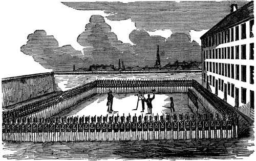 I had been here but three days, when we were summoned out to witness the punishment of a deserter. He was an athletic young man, who had been pressed into the service. He had left at home an old mother, a sick wife and one child, dependent on his daily labor for support. Finding all attempts to procure a discharge unsuccessful, he had deserted, and been retaken, through the treachery of a pretended friend, who, for the sake of a few pounds, could betray the distressed son and husband to so cruel a punishment, and a still more cruel separation from those so dearly loved. It would naturally be supposed that the strong temptation which existed for desertion might have mitigated the punishment; but this was not the case. War recognizes none of those affections which make the happiness of the human heart. It seeks only to crush out their life, or perhaps holds them up to ridicule, as things of no moment. He was sentenced to receive three hundred lashes. His sentence was executed, and we saw him taken down, bleeding and mangled, and carried to the hospital almost insensible. It was a long[23] time before he recovered sufficiently to perform duty. He did not again attempt desertion. A few days after, word was brought him that his wife and child had died from want, and that his old mother was in the parish workhouse. He was never seen to smile again. The soldiers were all kind to him, but I learned afterward, that he soon sickened, and died of a broken heart. The sight of this punishment filled me with dread, and threw quite a damper on my exalted ideas of a military life.