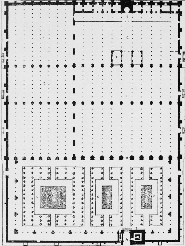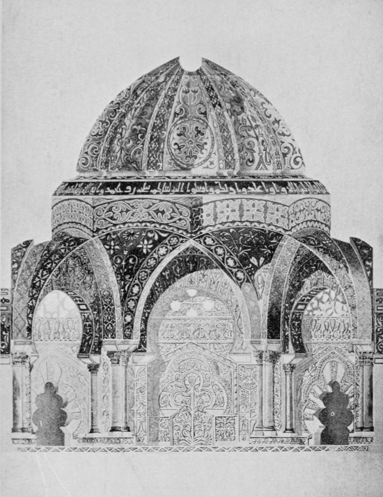 [3] The maksurrah is a screen or enclosure surrounding the mih-rab, with a sort of throne or platform where the Sultan sits, elevated above the level of the Mosque. The whole of that space which was taken up by the maksurrah is now occupied by the chapel of St. Estevan.