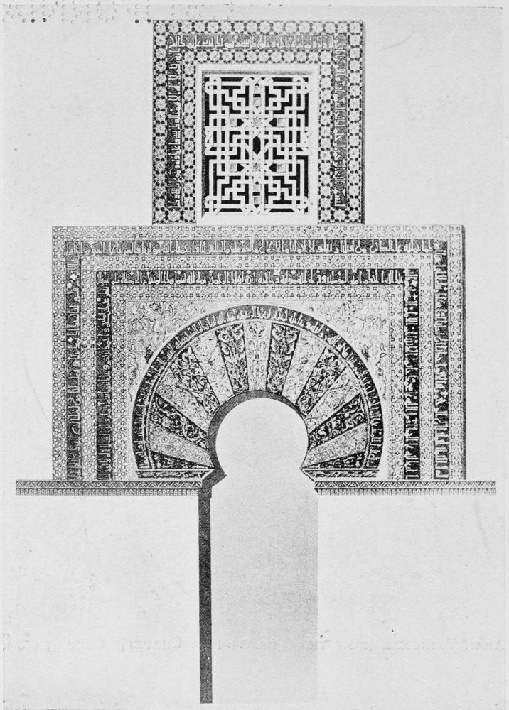 Tangible evidence of a superb civilisation surrounds us in Cordova. We see examples of early Moorish architecture brought to its highest artistic manifestation in the mosque. We listen in vain for the voices of teachers, the song of the singers and poets, and the call of the muezzin to devotion; but we tread in the footsteps of the long-vanished Moor, and read his story in the noble lines, chaste embellishments, and gorgeous details which his skilful hands produced.{13}