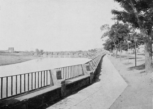 Standing on the massive bridge which spans the Guadalquivir, one looks upon the mosque, the city walls, and towers of churches. The Campo de la Verdad forms a broad promontory washed by the river, and we see quaint Morisco water-mills, and the lever nets of fishermen. There are seventeen arches to the bridge, which is of Moorish design, standing upon piles constructed by the Romans. In the distance rises the range of the Sierra Morena, a savage wilderness of rock, ravine, and crag, haunted by the boar, deer, and lynx. Winding through rich meadowland, the Guadalquivir flows, now in swift shallows, and then in slow deeps, which from certain points of view resemble landlocked pools. The river is wide, but not of great depth. Its flood is stained brown from the soil through which it flows, and at times, when the mountains pay their tribute of swollen streams, the Guadalquivir speeds in a turbid current, filling its banks to the brim.