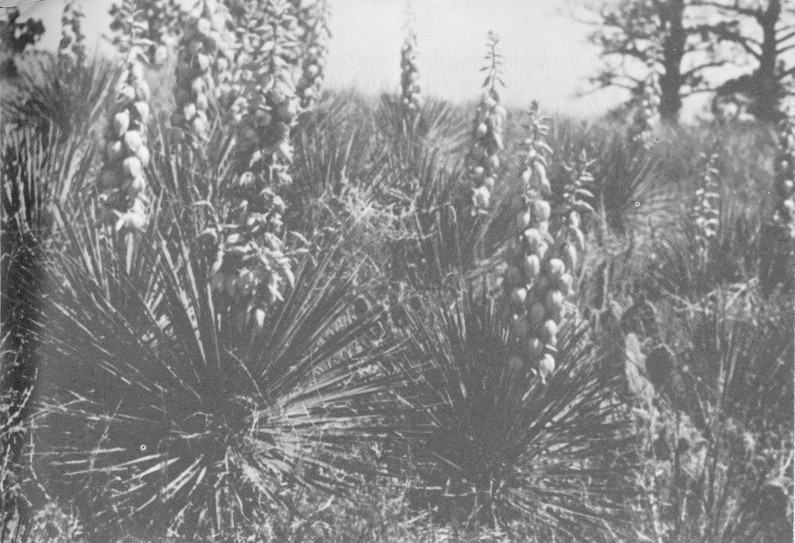 The conspicuous trees on the summit and north slopes of Scotts Bluff are ponderosa pine and a juniper usually called Rocky Mountain red cedar. In ravines and along the river banks are cottonwood, willow, and boxelder. The most common shrubs in the area are mountain-mahogany, wild currant, and wild rose. Wildflowers include sunflower, daisies, wild sweetpea, golden banner, penstemon, Indian paintbrush, yucca or soapweed, ball cactus, and prickly pear 57 cactus. The dominant grasses are blue grama, side-oats grama, buffalo-grass, slender and western wheatgrasses, and woolly sedge.