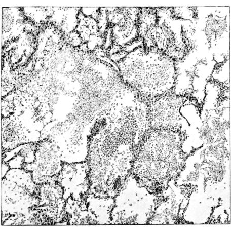 The pathology produced by the inhalation of these poisonous vapors is analogous to that found in influenzal pneumonia. This is said with a full comprehension of the criticism that may follow such a statement, and with the knowledge that a similar analogy has been drawn between influenzal and plague pneumonia (Symmers, 141). It is, however, a criticism that is welcomed and which will be met in the body of the paper.