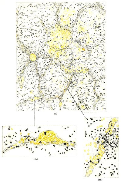 The majority of the fatalities occurred in the acute stage of the disease, the anatomical aspects of which have been elaborated more or less completely.[1] Other cases survived for 10a longer period and in these, anatomical changes existed, which, as will appear later, were prognosticated from the acute lesions. Moreover, these findings suggested that certain progressive anatomical changes occur even when the disease runs a much less severe clinical course; for example, in cases where respiratory symptoms persist for a long period before they are brought to a fatal conclusion.
