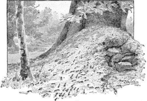 Im Walde, nahe am Schulwege, befindet sich ein großer Ameisenhaufen. Er steht am Fuße einer alten Eiche und ist fast ebenso groß wie Peter. Er sieht aus wie ein loser Haufen von Blättern, untermischt mit Erde und Reisern. Er ist unten breiter als oben.
