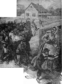 High hopes were felt of the success of this plan, but, to[231] the dismay of its authors, the canines having been trained to track negroes, refused to take the scent of an Indian. By urging, several were made to follow the scent, but the results were more discouraging than in the case of the others. The red men waited in the woods till the savage brutes came up to them, when they made friends with them and used the dogs to trail the owners themselves!