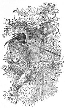 In more than one instance a whole platoon fired at Osceola. The bark was seen to fly from the tree behind which he crouched, and once he was hit, but the wound was slight and did not bother him. Not until a squad of Americans were almost upon him, did he break for new cover, which he safely reached amid a storm of bullets whistling about him. The valor of the Americans saved them from a more fearful massacre than that of Major Dade's command.